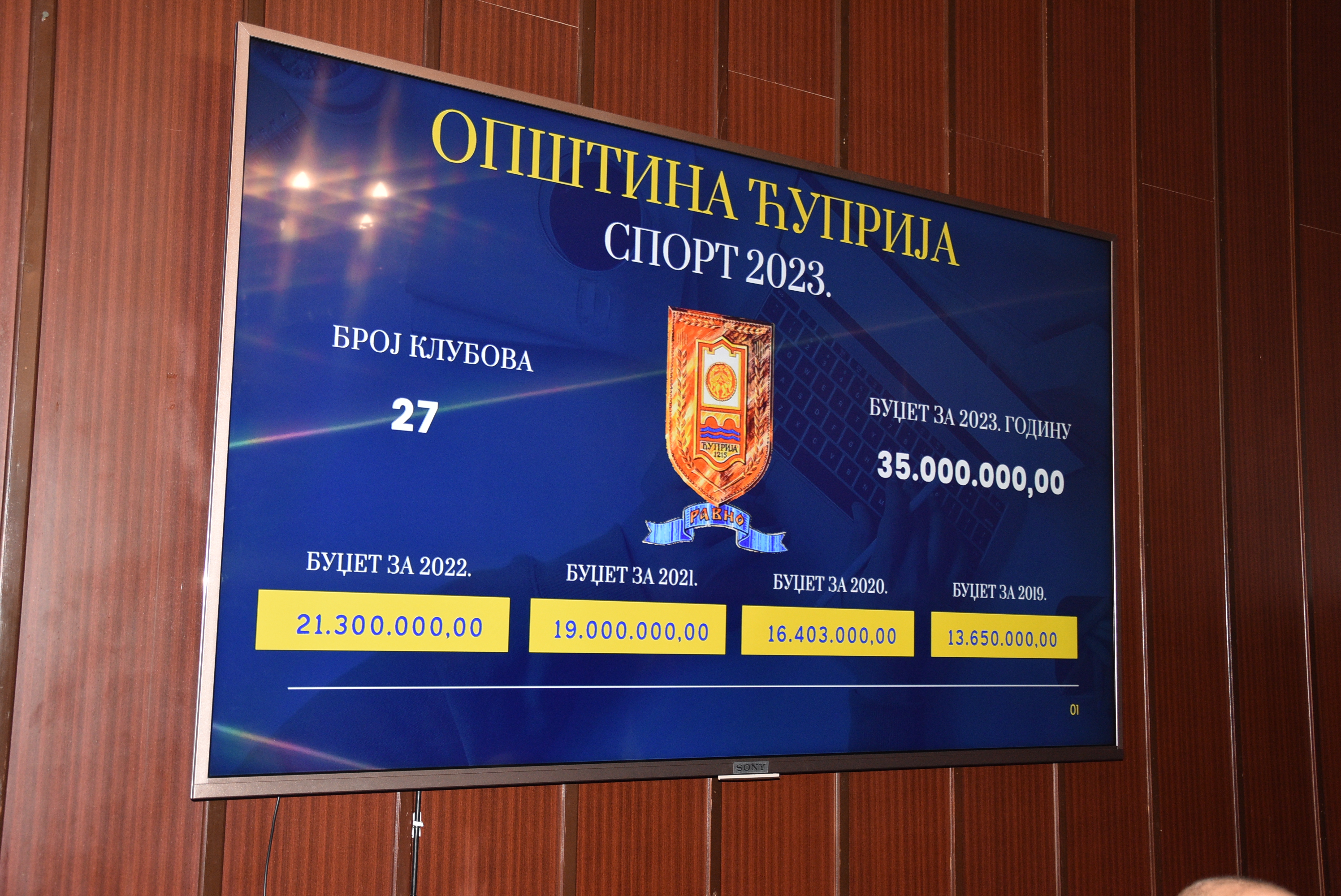 „Ове године имамо 27 уговора о финансирању у укупном износу од око 27 милиона динара. Укупан буџет за спорт је 35 милиона, што се досад никада није десило. Од 2019. до данас буџет за спорт је повећан више од два пута. Остатак до 35 милиона остављен је за још неке пројекте и програме који нас потенцијално очекују у 2023. години. Ако на ова средства, која смо из општинског буџета наменили спорту, додамо буџет Установе СРЦ „Ада“ за одржавање инфраструктуре, коју скоро сви спортски клубови бесплатно користе, улагања у спорт су много већа од ових 35 милиона динара“, изјавио је Владимир Васиљевић, заменик председника Општине Ћуприја, обраћајући се представницима спортских удружења која су данас добила средства за пројектно финансирање у 2023. години.