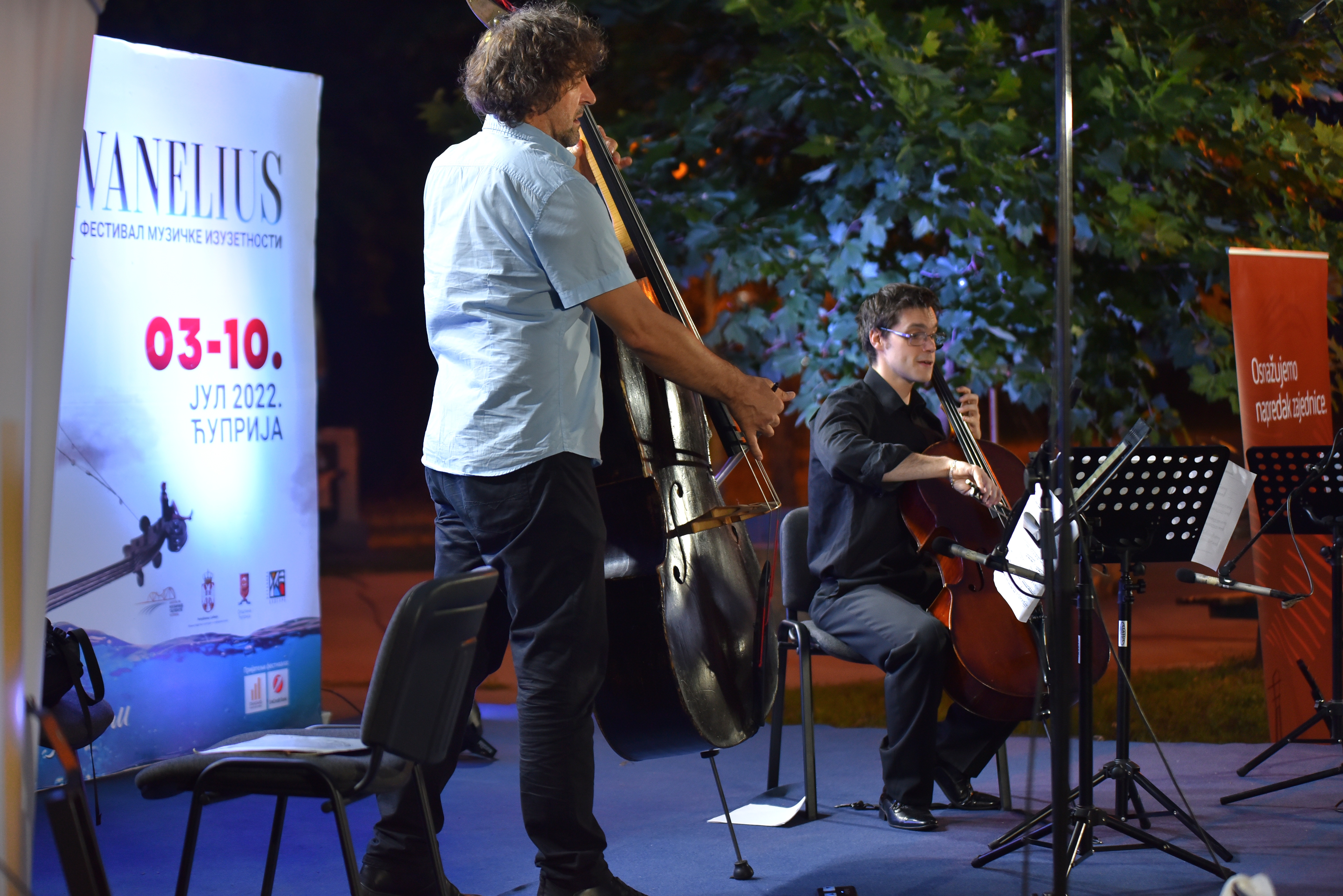 Можда отворена сцена није била довољно акустична за концерт камерне музике, али је зато укупна атмосфера у Моравском парку била изванредна. Довољно публике, лепо летње вече и расположени извођачи. Концертно вече петог дана фестивала отворио је дует Атанас Крастев – чело и Зоран Марковић – контрабас свирајући Росинија, наставио Лазар Милетић, па онда бриљантни и егзибиционо расположени Давид Хорват.